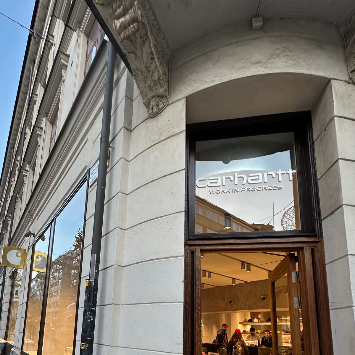 Besök Carhartt på Norrlandsgatan och se de eleganta flaggskyltarna på nära håll!