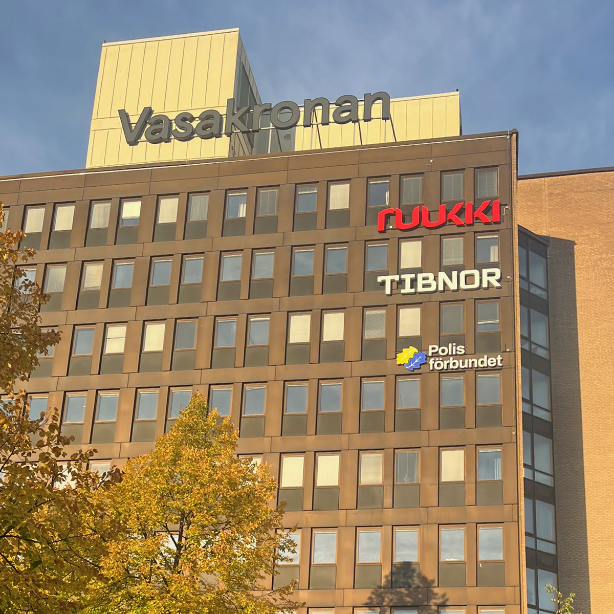 Ruukki tillverkar vägg- och taklösningar för industri, kontor och idrottsanläggningar och erbjuder design- och produktoptimering med tydligt fokus på hållbarhet. För ett företag som bygger med precision i varje detalj var det självklart att även skylten skulle hålla samma höga nivå.